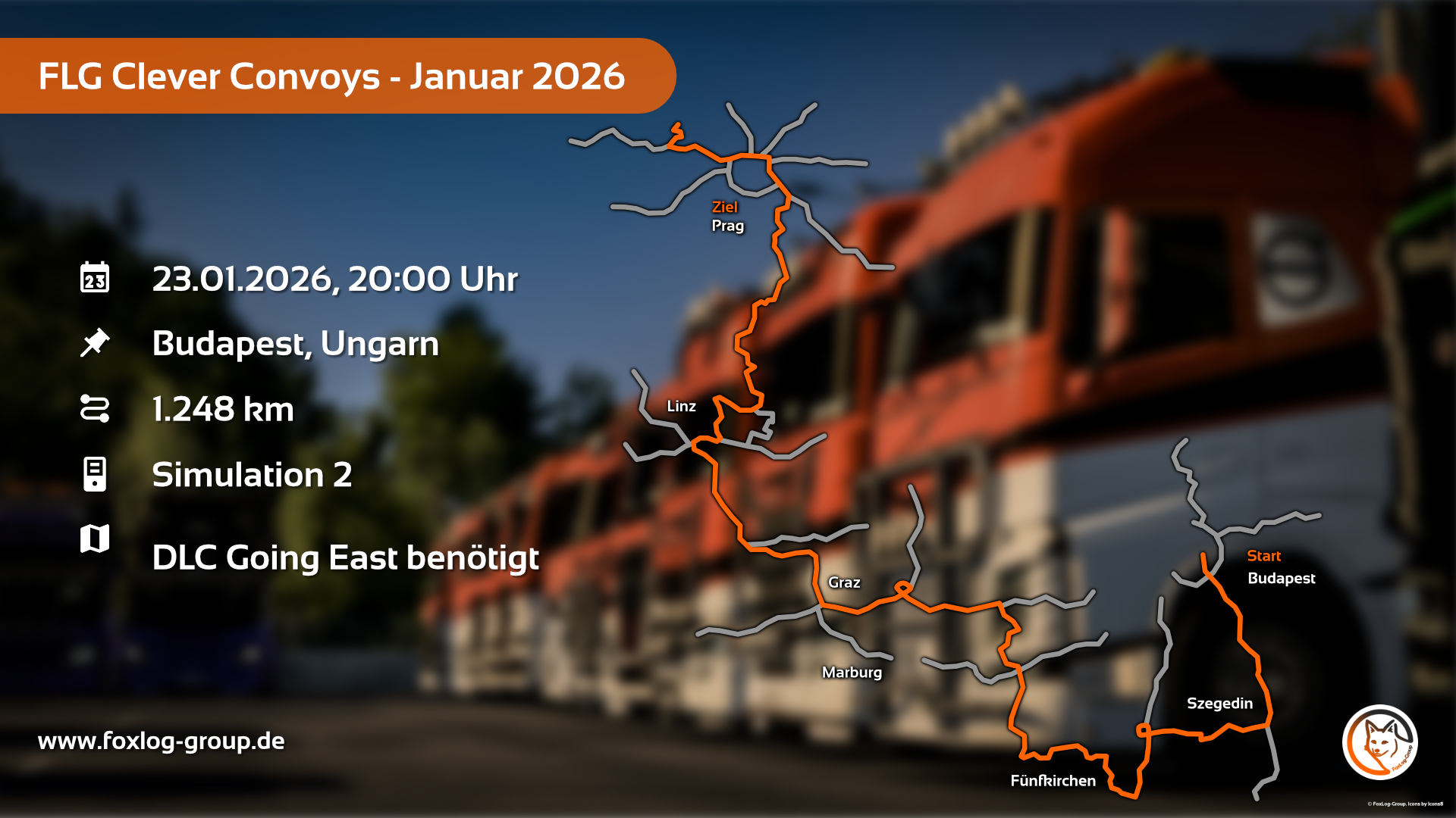 Die FoxLog-Group lädt euch recht herzlich ein zum Clever Convoy im Januar 2026! Das Event findet am Freitag, den 23. Januar statt.