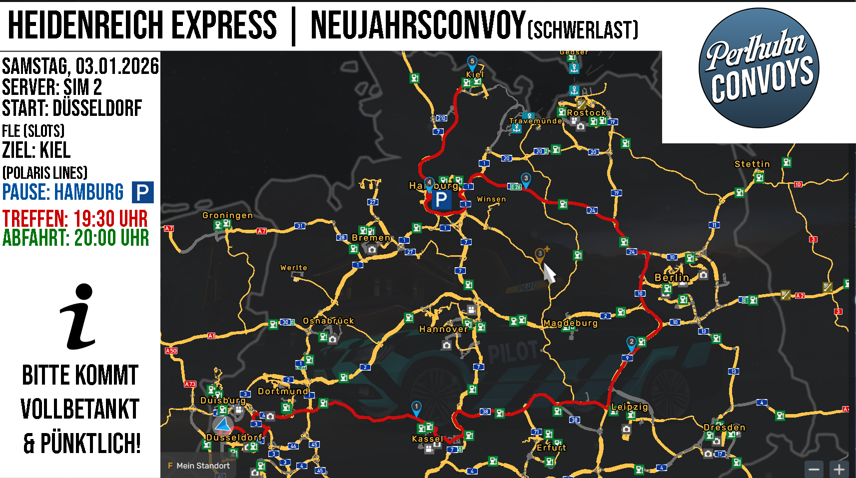 Samstag, 03.01.2026 Server: Sim2 Startpunkt: Düsseldorf Ziel: Kiel Firma: Polaries