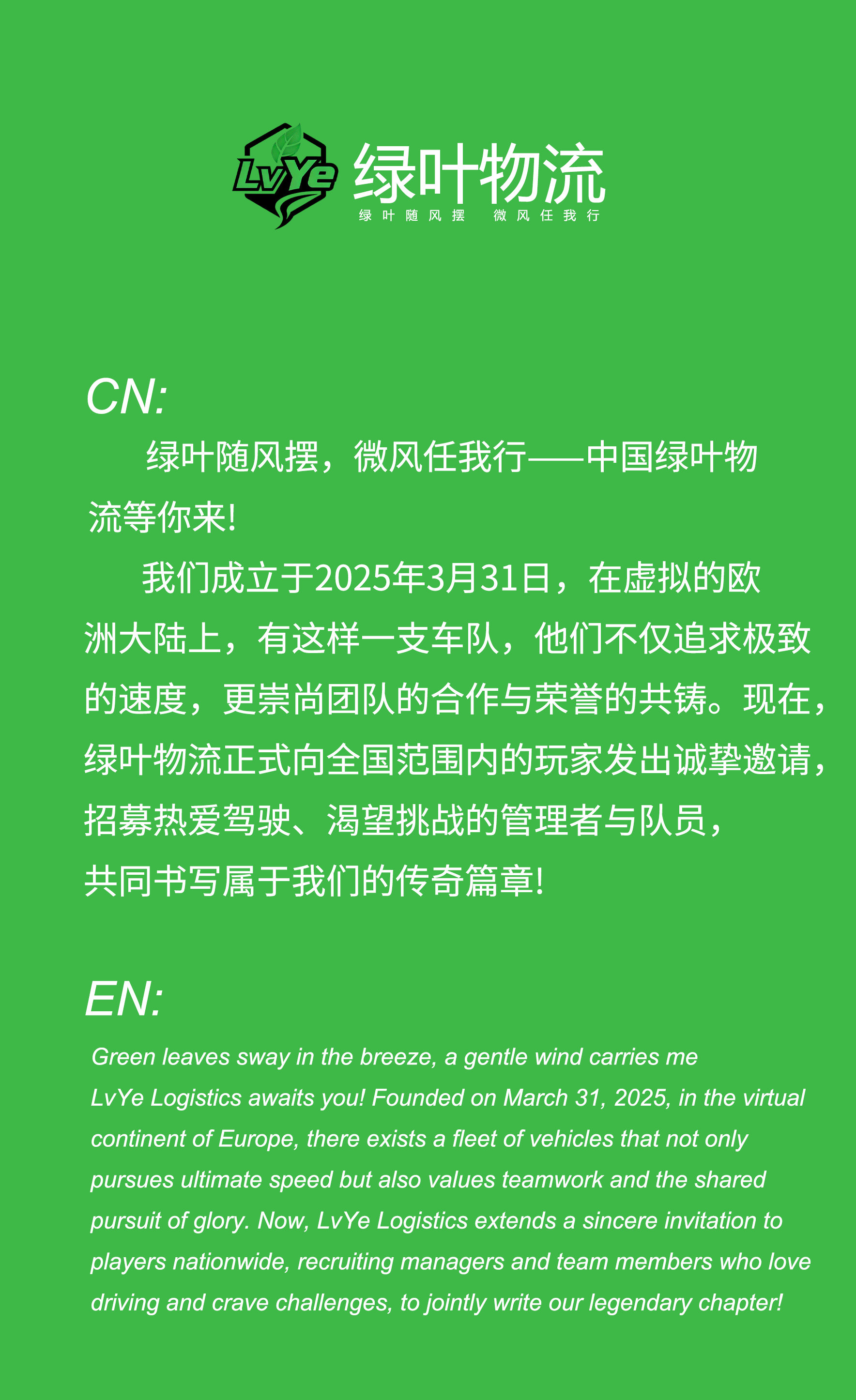 | 名称 | 绿叶物流 | LvYe Logistics |